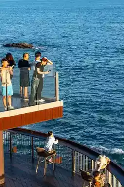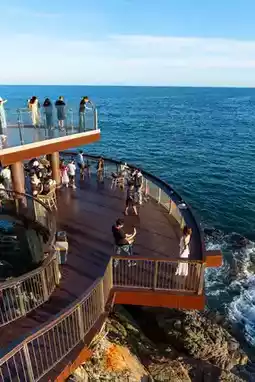 1. Classic spot: Sit on the curved seats on the first floor and shoot downward from the second floor to capture people, rocks, and waves all in one perfect composition.
