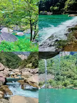 - Youlong Bay: Located to the east of Baoquan Valley, it is featured on the cover of "National Geographic China" for its unique "curved gorge" geological form. The Shuanglong Waterfall rushes down and converges here. The water is turquoise and surrounded by mountains, with magnificent scenery.