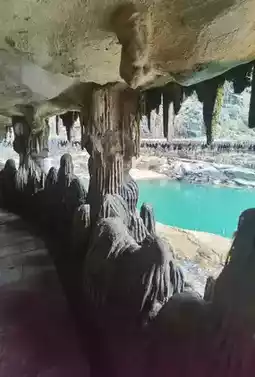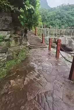 Luckily, it rained, making it cooler than sunny weather. The mountain rain 🌧 came and went lightly, adding charm without disrupting the trip. Along the way, we admired emerald mountains, serene waters, and swimming fish, taking our time until we reached the waterfall.