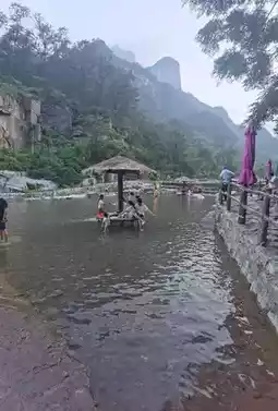 Got up early the next day for a simple breakfast: freshly made scallion pancakes, corn porridge, and stir-fried veggies. Took the waterside route, playing and sightseeing along the way to the final stop 🏁—Central China's No. 1 Waterfall, Tianhe Waterfall.