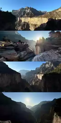 Start from Zhanggou, climb 4 km to Shiziling to watch the sunrise, ascending 700m, about 2 hours. 🌅 After watching the sunrise, return to Shiziling Inn. At 9 km, start walking along the plank road. At 13 km, reach the Kulong Mountain photo spot 📸. From 15 to 17 km is a downhill gravel path; watch your step on the loose stones and wear knee pads for the continuous descent. Arrive at Taihang Style Garden, then take a car back to Xinxiang Station, visit Pangdonglai, and end the final day.