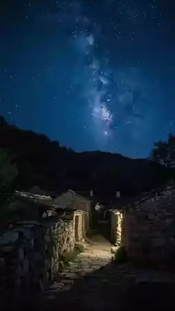 🌙 Evening stroll in the stone village, the starry Milky Way clearly visible