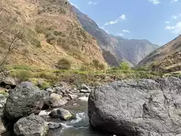 On the way back, a sudden mountain rain came, and the raindrops stirred up thousands of transparent bells on the river surface. Those silent boulders looked even greener in the rain, like ancient spirits guarding a secret place. On the ten-kilometer journey back, my trouser legs were splashed with mud like a pass stamped with seals - in this dialogue with the mountains and rivers, the stones ultimately remembered my body temperature, and the flowing water took away my reflection.