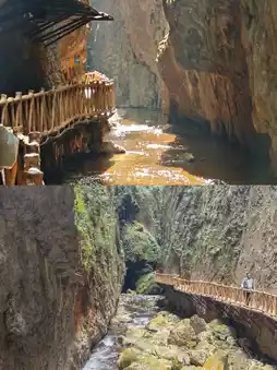 This is a site of raw, unfiltered beauty, showcasing the Earth's scars. As you walk along the bronze-colored rock walls, observe moss-covered water droplets, formed over eons, slowly trickling down. At its narrowest point, the canyon measures a mere 3 meters wide. Looking up, you'll only glimpse slivers of sky fragmented by vines. Deep within the rock layers, a subterranean river roars, its currents carving fierce patterns into the stone walls. During the rainy season, from June to August, you might encounter hidden waterfalls. In the dry season, the water erosion marks on the rock face reveal a profound sense of history.