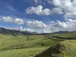 Standing atop the 3,500-meter-high ridge, the view is breathtaking. In early summer, the meadows resemble a vast emerald carpet, stretching along the contours of the mountains to the horizon. The gentle curves are nature’s most exquisite brushstrokes, with shades of green shifting under the sunlight. Occasionally, patches of exposed brown earth punctuate the landscape, like carefully designed patterns on the carpet, adding a touch of rugged beauty.