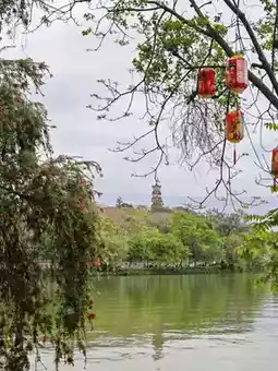 At the foot of Sizhou Pagoda, we had to climb a flight of stairs. The pagoda looks most beautiful halfway up the stairs. Su Dongpo once wrote a poem, "At the first watch, the mountain spits out the moon, and the jade pagoda lies in the ripples." Unfortunately, it was too crowded, so we just glanced at it and left.