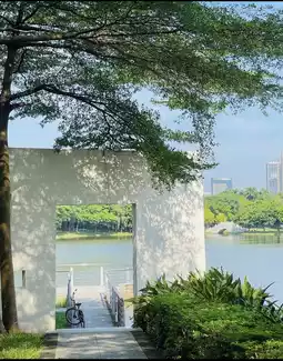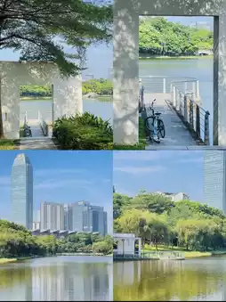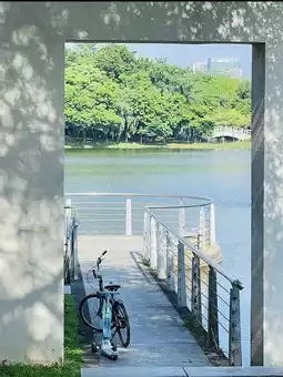 All the attractions around the lake are built encircling it. Besides the small bridges, several modern-style viewing platforms with various designs are set up at different sections, perfect for enjoying the scenery from different angles. After walking each section, I can’t help but look back to appreciate the view I just saw from another perspective, discovering a different kind of beauty. So, I took multiple photos of the same spot from different angles repeatedly. The saying "take a step and look back" probably describes my current state.