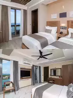 Aman Grand Hotel is located in a prime location in Male. The modern and simple design style is integrated with the marine elements of the Maldives. From the moment you step into the lobby, you can feel the island style. The rooms are spacious and bright, each equipped with high-end facilities, and some room types also have private balconies with panoramic views of the city or sea. The hotel has multiple restaurants offering a wide range of international cuisine and local specialties, as well as a gym, spa center, etc., allowing you to enjoy a relaxing time during your journey.