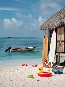 On the first day of arriving in Male, the sun was warm and gentle. As soon as you leave the airport, the salty sea breeze hits you in the face. After checking into the B&B by the sea, I couldn't wait to walk to the beach. The white sand slides between your toes, and the waters of the Indian Ocean present a dreamy gradient of colors, from light blue to dark blue, which is breathtakingly beautiful. I strolled along the beach, admiring the slowly setting sun. The sky was dyed orange-red, contrasting with the blue sea, like a dream.