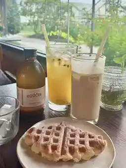 This cozy spot features both a café and a homestay, making it perfect for a relaxing day trip or a weekend getaway. During our visit, the café was bustling with guests and all the cakes were already sold out—a sign of how popular it is! We enjoyed their iced latte, the refreshing Markisa Oren cooler, and a bottle of kombucha for a healthy touch. For a sweet bite, the classic sugar waffle was a delightful treat.