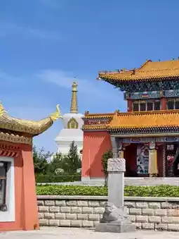 A place with a panoramic view of Hailar. The "One Pagoda and Two Temples" refers to the Bodhi Pagoda, Darjilin Temple, and the Ten Thousand Buddha Temple. Darjilin Temple is a Tibetan Buddhist temple, while the Ten Thousand Buddha Temple is a Han Buddhist temple, blending Mongolian, Tibetan, and Han cultures.