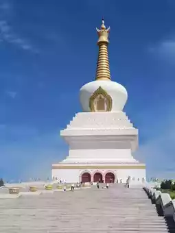 The Bodhi Pagoda is constructed of white marble and is accessible by stairs, but entry is prohibited.