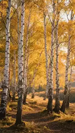 Drive north into the birch forest secret realm, golden leaves fluttering along the way, like stepping into a Studio Ghibli world.