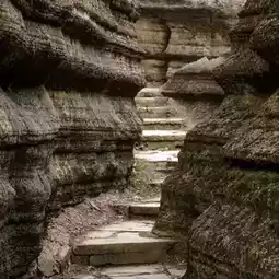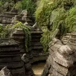 It’s super fun to explore. Some parts feel like a maze, with twists and turns and little surprise views around every corner. The vibe is peaceful too, with trees growing between the rocks and birds chirping in the background.