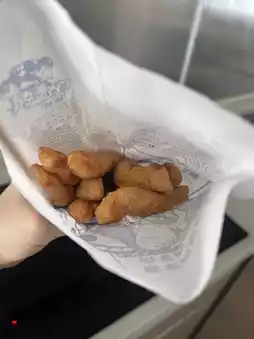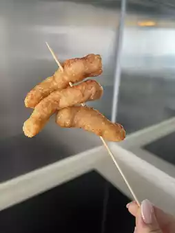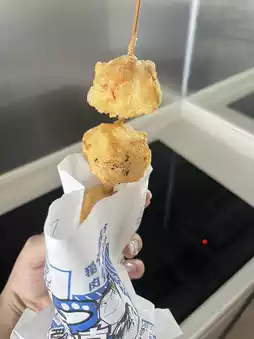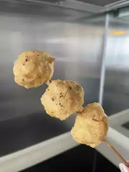 In addition to chicken steak, there is also vegetarian fried mushroom cake, which is sliced and eaten slowly. It is crispy and crisp, perfect for snacking. For snacks, I tried the flower ball and sweet and spicy. There are three flower balls in a string, which is super bouncy; sweet or not spicy is fragrant, soft but the crust is crispy. Buy it and eat it while watching TV. It's overflowing with happiness!