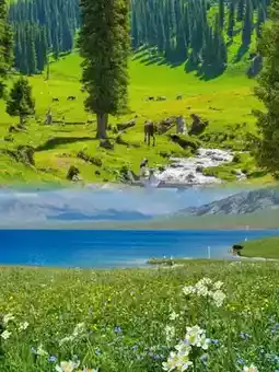 Starting from Urumqi, head all the way to Sailimu Lake🌅. At this time, the ice and snow of Sailimu Lake have just started to melt, and there are still some crystal clear ice cubes remaining on the lake surface, which reflect the newly blooming ice flowers, making it beautiful like a dream. Take a stroll along the lake or drive around the lake to feel the tranquility and beauty.