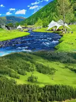 Starting from Yining, head to Daxigou Fushou Mountain; the apricot blossoms here bloom in layers along the hillside🌷, contrasting with the green trees and streams in the mountains, which is beautiful. Strolling in the apricot blossom forest, breathing in the fresh fragrance of flowers, and feeling the beauty of nature.