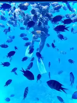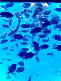 The crew will play Arabic-inspired music on board, encouraging everyone to dance and sway, creating a truly joyful atmosphere! It's a truly memorable experience. After sailing for a while, the glass-bottom boat will dock further out, allowing guests to put on their snorkeling gear and explore this marine wonderland. The seabed remains picturesque, and the fish are fearless, swimming freely, making it feel like you're in an aquarium.