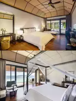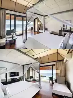 Lily Beach Resort offers a variety of room types, from beach villas to overwater bungalows, each designed with both luxury and comfort in mind. Beach villas offer privacy and tranquility, while overwater bungalows provide direct access to the turquoise ocean, allowing you to enjoy endless sea views from your bed. Rooms are equipped with iPod docks, LCD TVs, and DVD players, as well as private patios and furniture, allowing you to fully enjoy your vacation.