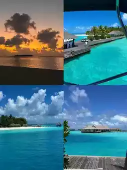 The Maldives, this pearl of the Indian Ocean, is truly a paradise for vacations! Blue skies with white clouds ☁️, crystal clear waters and blue skies 🌊, pristine waters and fine sand, it's incredibly beautiful!