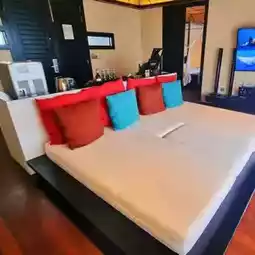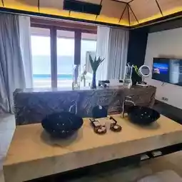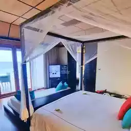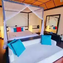 - This over water villa comes a more private second room with a day bed when the weather is too rainy or sunny.