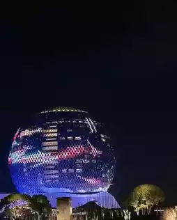 - Appearance: One of the largest spherical buildings in the world, its shape resembles the sun, forming a "sun and moon shining together" landscape with the Moon Hotel.