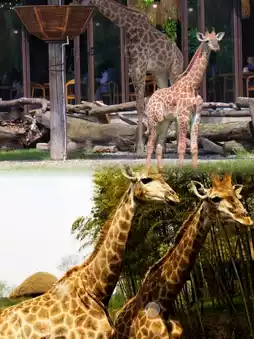 The highlight is getting up close with giraffes! Open your curtains in the morning, and you might find these adorable creatures waiting outside your window for treats. Their gentle nature and big, soulful eyes will melt your heart. The park also houses other animals like raccoons and marmots - a true paradise for kids!