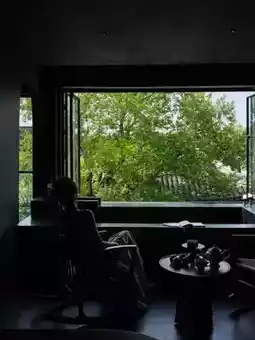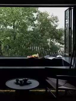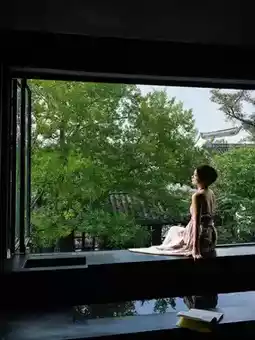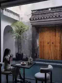 the upturned eaves of Yiyuan Garden behind the house hook a wisp of mist.