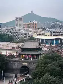 Xiangwang Park framed with Renhuang Pavilion, the Overlord Gate built in memory of Xiang Yu, also the ruins of Huzhou's ancient city gate