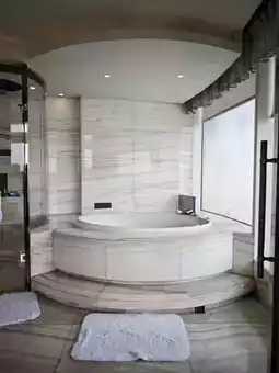 * **Room Amenities:** Spacious, well-laid-out rooms. Classic five-star standards with decent upkeep—some wear (e.g., hardware, carpets) but overall clean and comfy. The window-side bathtub with lake views is a unique treat. Toiletries are standard Sheraton fare.