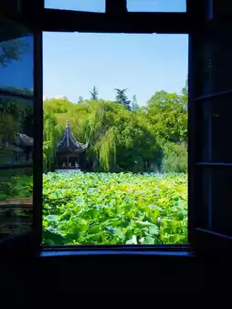 Just a minute’s walk to the lotus ponds, nestled among greenery with white walls and black tiles.