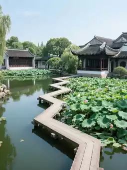 Head straight to the “Lotus Pond”! In summer, lotus leaves cover the sky, standing on the Nine-bend Bridge to shoot “red railings reflecting green,” wearing a qipao fits perfectly~ Don’t forget to visit the “Dongsheng Pavilion” in the backyard, the second-floor terrace offers a full view of the garden, where Miss Liu embroidered back then