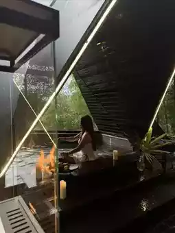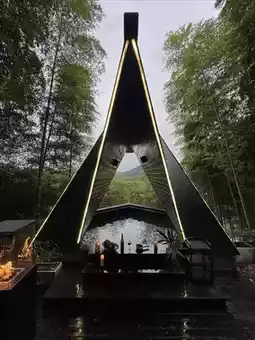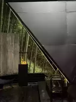 In the evening, step into the black soaking pool among the bamboo forest