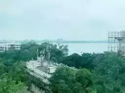 From my room at Hyderabad Marriott Hotel, the view stretched across the vast Hussain Sagar Lake, shimmering under the city lights. At its heart, the Buddha statue stood tall, a symbol of tranquility amidst the urban buzz. Tank Bund Road was alive, bustling with cars and people, a stark contrast to the lake’s calm waters. From dusk till dawn, the scene transformed—sunsets painted the sky, and mornings brought golden reflections on the water.