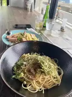 Since arriving in Kagoshima, I've been curious about a certain type of seasoning with a name similar to katsuobushi (bonito flakes)—though I can't quite remember the name 💦. I ended up ordering a Japanese-style pasta mixed with that seasoning and small fish. It turned out to be a hit—it was absolutely delicious! The seasoning was generously sprinkled, giving it a nice crunch and a subtle ocean aroma. The dish also included ham, green onions, and seaweed, adding to the Japanese-style flavor 🥢.
