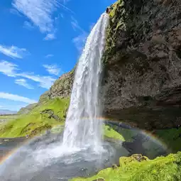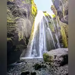 The sunlight often creates rainbows through the spray, adding a magical touch to your photos. Despite being a popular stop along the Ring Road, it still feels peaceful, especially during early morning or late evening visits. Watching the water plunge gracefully over the cliff is pure Icelandic beauty, simple yet unforgettable.