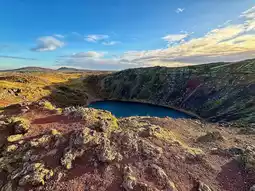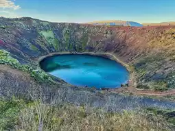 The calm water and colorful rock formations make it perfect for photos or a quiet moment to enjoy the scenery. Though the visit is short, Kerid Crater leaves a lasting impression as a simple yet stunning glimpse into Iceland’s volcanic heart.