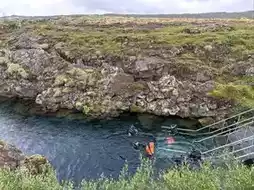 Even just standing by the edge feels surreal, knowing you’re at the meeting point of continents. The water is icy cold, but with a dry suit, it’s a once in a lifetime experience. Floating through Silfra feels peaceful and otherworldly, with shades of blue and turquoise glowing around you. It’s not just a geological wonder but a place that captures Iceland’s quiet, pure, and powerful beauty beneath the surface.
