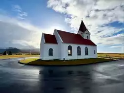 The surrounding area feels incredibly peaceful, offering quiet moments to reflect and enjoy the scenery. On clear days, the panoramic views stretch endlessly, showing the beauty and isolation of the Snæfellsnes Peninsula. Whether you come for photography, history, or simple tranquility, Ingjaldshóll captures the serene essence of rural Iceland and leaves you with a sense of calm that lingers long after your visit.