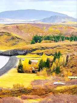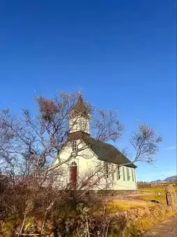 The road to Thingvellir National Park and Úlfljótsvatnskirkja in Iceland is a peaceful and scenic drive through rolling hills, lakes, and open countryside. As you leave the city behind, the air feels fresher, and the landscape turns wild and beautiful. The road winds past volcanic fields, patches of green moss, and calm waters that mirror the sky. On the way, you pass Úlfljótsvatn Lake, where the white Úlfljótsvatnskirkja Church stands quietly by the shore—a lovely sight with mountains in the background. The church’s simple beauty and reflection in the water make it a favorite stop for photos. Continuing toward Thingvellir National Park, the scenery grows even more dramatic, with deep valleys and distant glaciers. It’s a journey that feels peaceful yet full of wonder, showing the true heart of Iceland’s nature.