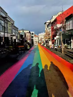 Rainbow Street, or Skólavörðustígur, in Reykjavík is one of Iceland’s most colorful and joyful spots. Stretching up toward the iconic Hallgrímskirkja Church, the street is painted in bright rainbow colors, symbolizing love, diversity, and unity. Originally created to celebrate Pride and support the LGBTQ+ community, it has become a cheerful symbol of Reykjavík’s open-minded and creative spirit. Lined with cozy cafés, boutiques, and art shops, Rainbow Street invites visitors to stroll, take photos, and enjoy the lively atmosphere. The contrast of the vivid street against the calm gray tones of Iceland’s buildings and sky makes it especially eye-catching. Whether you visit on a sunny day or under soft northern light, the colors seem to glow with happiness and hope. Rainbow Street perfectly represents modern Iceland—colorful, welcoming, and full of heart.