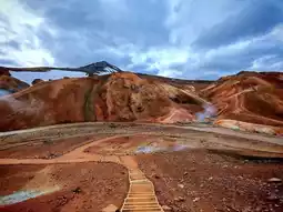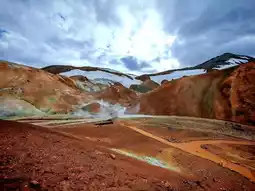 Kerlingarfjöll, reached by the rugged F347 mountain road, is one of Iceland’s most stunning geothermal wonders, hidden deep in the Icelandic Highlands. This volcanic mountain range glows with surreal colors—orange, red, yellow, and white—caused by the geothermal heat and rhyolite rock. Steam rises from hot springs, bubbling mud pools, and fumaroles, blending with snow-capped peaks to create a dreamlike landscape. The F347 road adds to the adventure, leading travelers through rivers, lava fields, and untouched wilderness. Hiking trails wind through steaming valleys and along ridges with breathtaking views of glaciers in the distance. Once a mysterious land feared by locals, Kerlingarfjöll is now a paradise for explorers and photographers seeking Iceland’s raw beauty. In summer, it feels like walking on another planet; in winter, it becomes a silent, frozen realm.