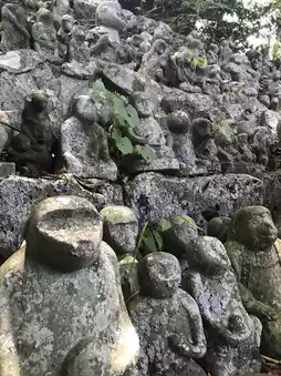 Hundreds of stone monkeys are lined up within the shrine grounds!