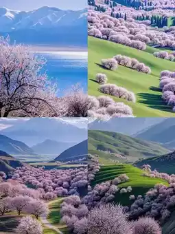- Nalati Apricot Blossom Valley: Where the vast grasslands meet the romantic apricot blossoms, with snow-capped mountains in the distance and a sea of apricot blossoms at your feet. This unique landscape combines the vastness of the grasslands with the gentle beauty of the apricot blossoms, creating a truly captivating scene.