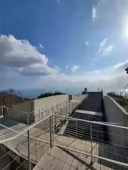 From the panoramic observation bridge, known for its design by Kengo Kuma, you can see the world's first triple suspension bridge, the Kurushima Kaikyo Bridge, the tidal currents of the Kurushima Strait, one of Japan's three fastest tides, and on a clear day, the highest peak in western Japan, Mt. Ishizuchi.