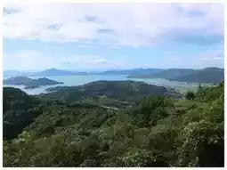 From the Kiro Mountain Observatory, you can see the world's first triple suspension bridge, the Kurushima Kaikyo Bridge, the Kurushima Strait, and the highest peak in western Japan, Mt. Ishizuchi.