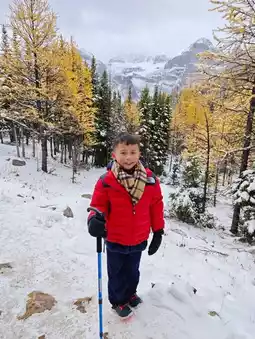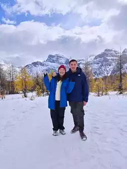 Larch Valley is a popular hiking spot during the fall foliage season at Moraine Lake. The beautiful mountain scenery contrasts with the yellow larch trees, creating a stunning atmosphere. The hike is easy, starting from the lake and covering a distance of about 5 kilometers. The trail is relatively easy, but be cautious as it can be slippery with snow at times. It's advisable to bring snow spikes for better traction. Once you reach the top, the breathtaking views are perfect for photography. Bring food for a picnic so you can relax and enjoy the scenery while eating, as there are no food vendors at the top. Make sure to take care of any personal needs before hiking up, as there are no restrooms available. It's best to book an early morning bus to have enough time to hike up and return without missing the last bus. Booking the bus can be a bit challenging as there are specific times when reservations open, so it's best to book early. Private vehicles are not allowed at the lake; you must take the bus to get there.