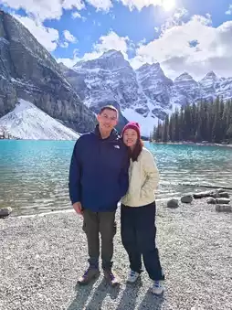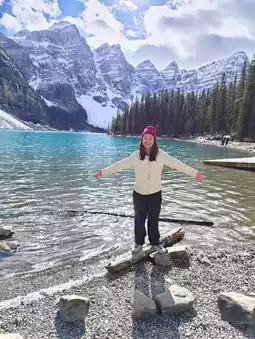 Moraine Lake, often hailed as the most beautiful lake in Banff National Park, is a stunning emerald-green lake surrounded by majestic mountain peaks. This creates a breathtakingly picturesque view. To visit Moraine Lake, you must use a shuttle bus, as private vehicles are not allowed. Visitors need to book a tour or reserve a spot on the park's shuttle bus in advance. It's highly recommended to plan ahead and secure your reservation early, as buses can fill up quickly on your desired travel date. Once you arrive, don't miss the chance to hike up to the viewpoint. It's a short climb that offers a spectacular elevated view of the lake, making it a popular spot for photography. If you're visiting Banff National Park, Moraine Lake is an absolute must-see destination.