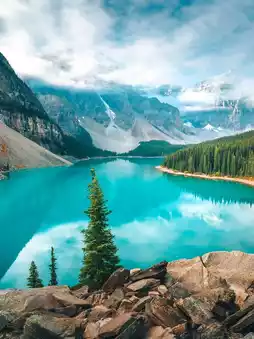 In the early morning, Moraine Lake is as still as a mirror, with its waters displaying an unreal turquoise hue. As sunlight gently touches the surface, the colors gradually brighten. Standing on the viewpoint rock, the reflection of the mountains on the lake creates a flawless landscape painting.