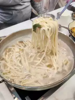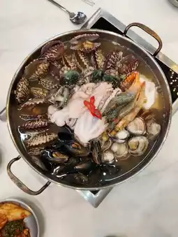 ❣️The kalguksu with lots of fresh seafood was really delicious. It had a variety of ingredients such as shrimp, abalone, scallops, mussels, clams, and octopus, so the broth was refreshing and had a deep flavor, and the kalguksu noodles were chewy and soft, so it was delicious. The portion was generous, so I had some leftover kalguksu. It was nice that there was an hourglass timer to explain when to eat, and there was also a pork cutlet menu for kids! The seafood pancake was thick and crispy like fried food, so it was really delicious!! The store was spacious and comfortable, and the staff was friendly, so I was able to enjoy my meal :)